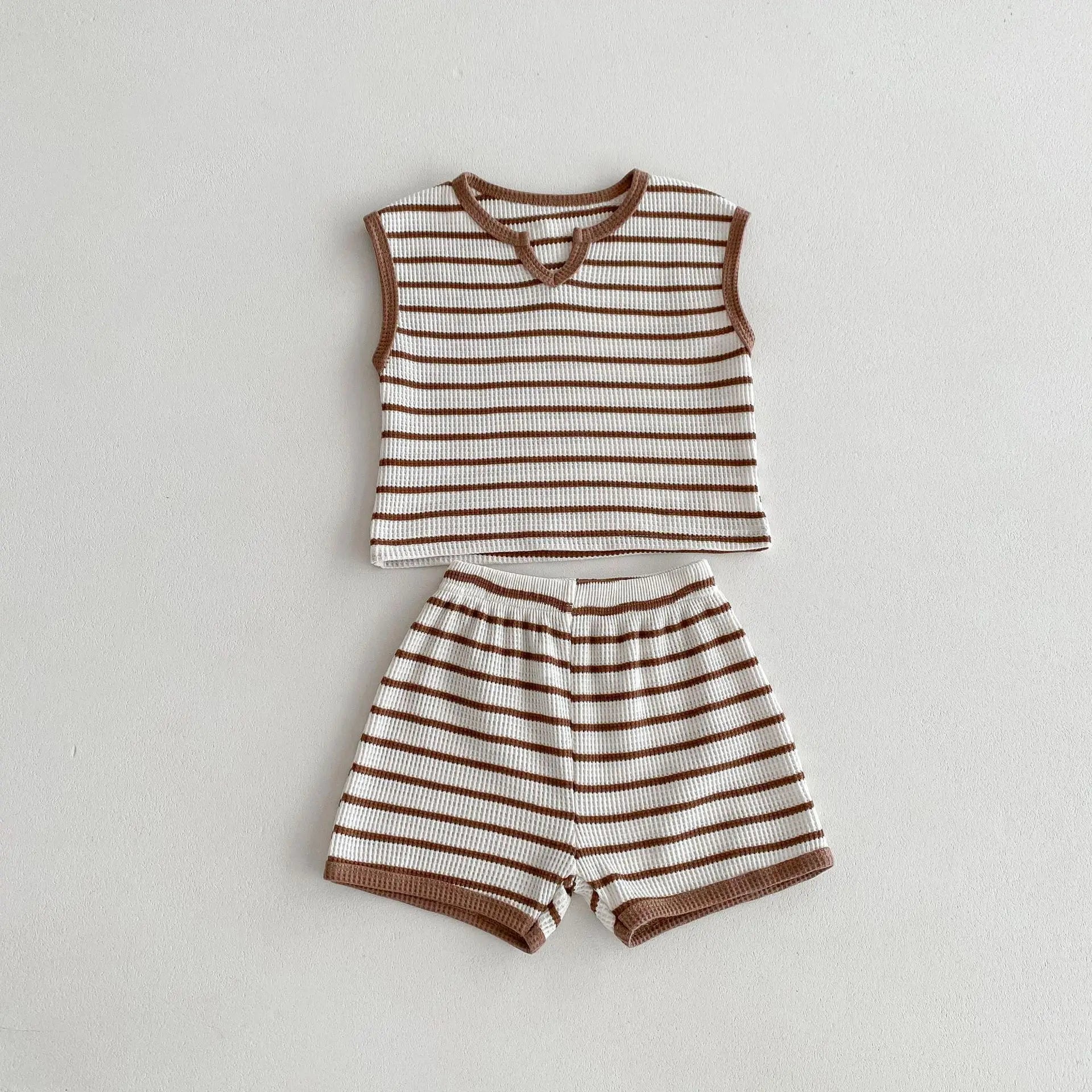 Made from breathable cotton, it’s gentle on delicate skin and perfect for play, naps, and everything in between. The subtle striped design—available in a calming grey or earthy brown—adds just the right touch of detail without overwhelming.